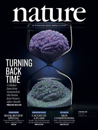 当期《自然》杂志的封面,左侧文字意为“逆转时间”