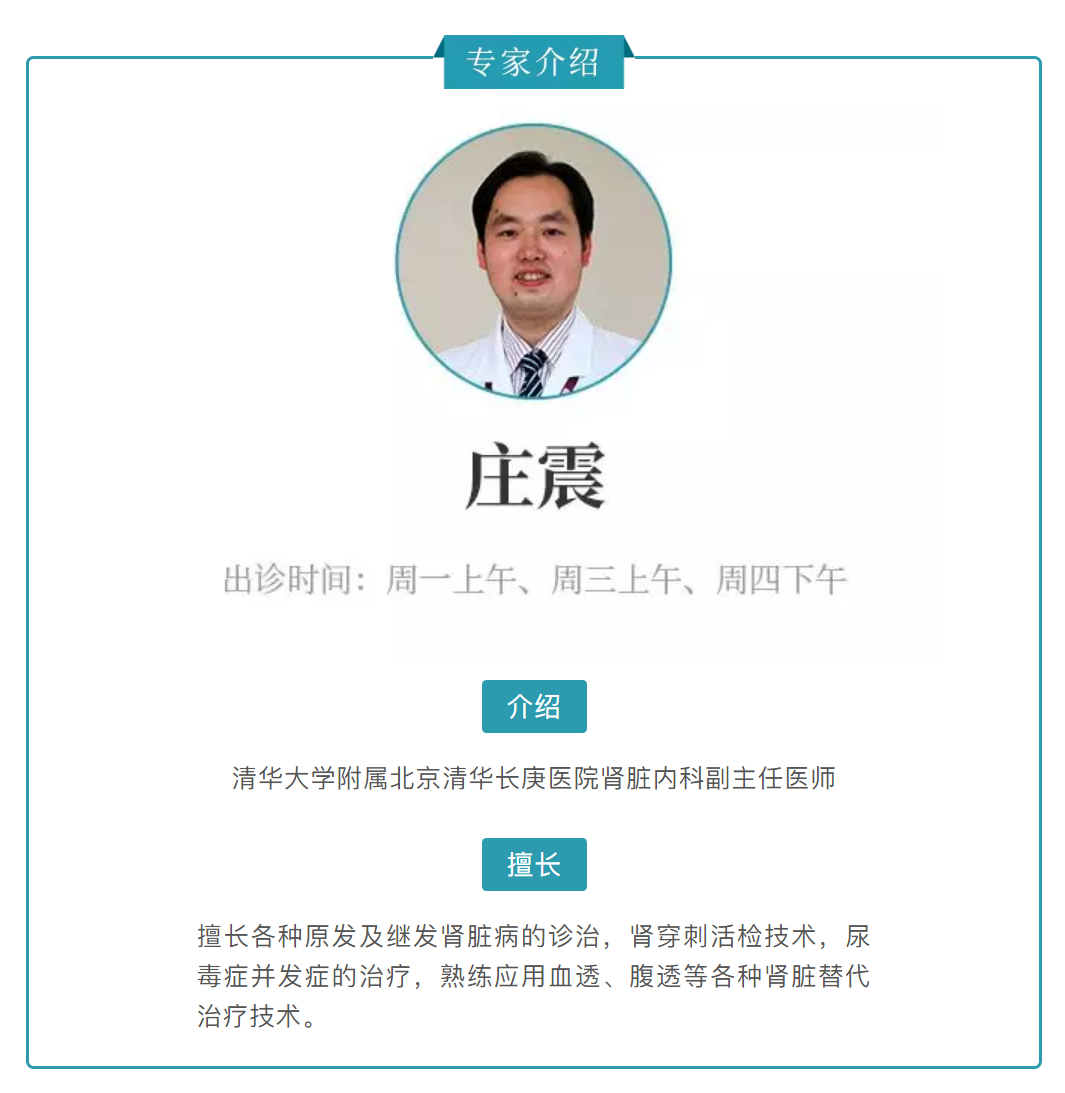 文字:清华大学附属北京清华长庚医院肾脏内科副主任医师庄震