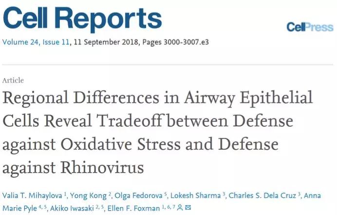[10] Mihaylova, V. T. et al. Regional Differences in Airway Epithelial Cells Reveal Tradeoff between Defense against Oxidative Stress and Defense against Rhinovirus. Cell reports 24, 3000-3007.e3003, doi:10.1016/j.celrep.2018.08.033 (2018).
