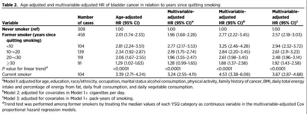 研究人员通过对143279名年龄在50-79岁的美国女性进行追踪研究,发现戒烟和抽烟的人,患膀胱癌的风险分别是从不抽烟的人的2.0倍和3.4倍,而戒烟时间越长,风险就越低。