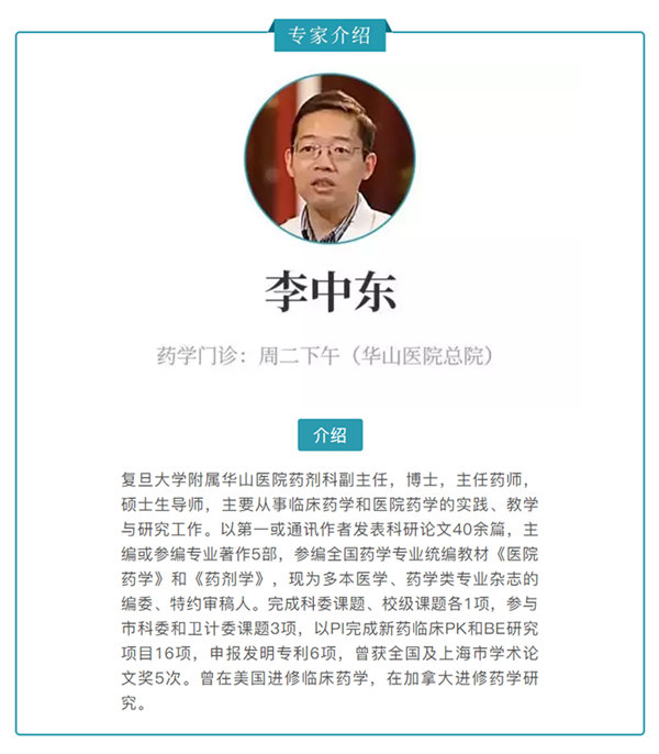 文字:复旦大学附属华山医院药剂科主任药师李中东