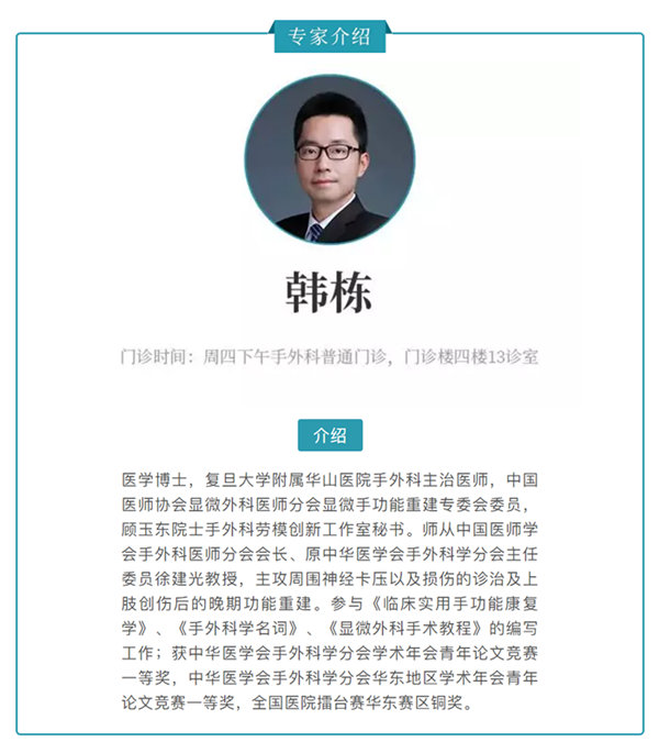 文字:复旦大学附属华山医院手外科主治医师韩栋