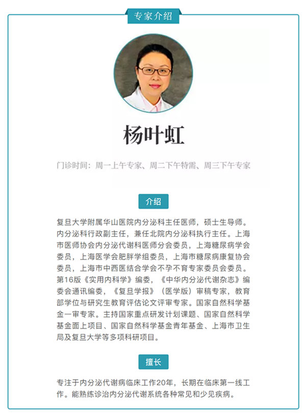文字:复旦大学附属华山医院内分泌科主任医师杨叶虹