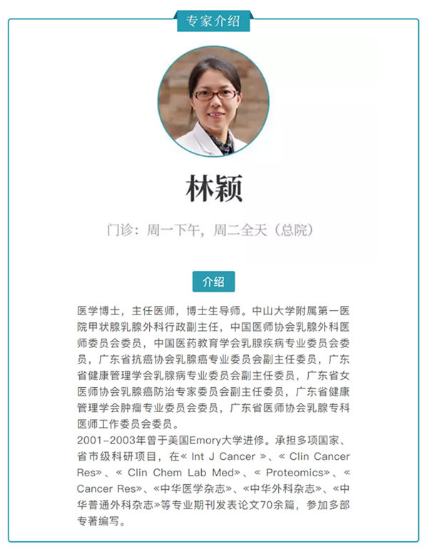 文字:中山大学附属第一医院甲状腺乳腺外科主任医师林颖