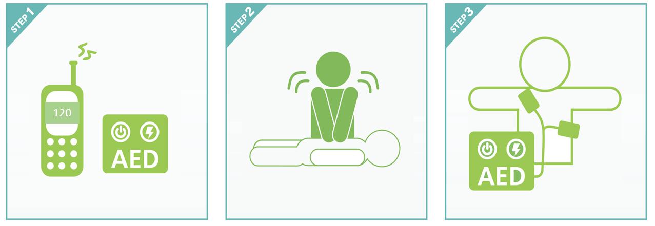 2.如果没有响应,请立刻拨打120并且大声呼叫请附近的人寻找到最近的AED仪器。