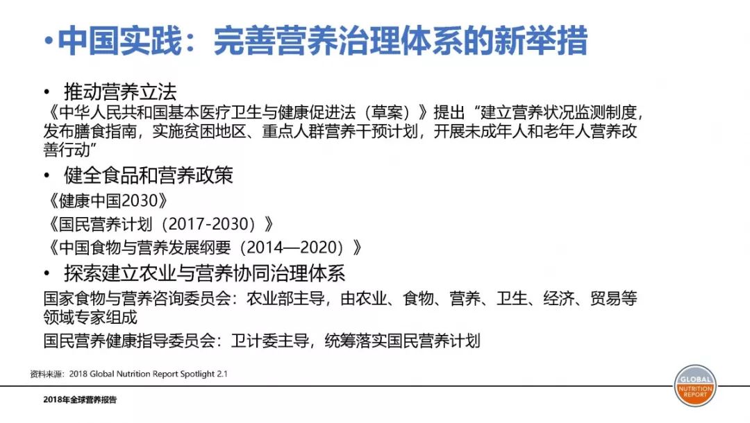在多种营养问题的挑战下,各国也采取了一系列不同的政策和措施,在《报告》调查阶段你,还是有很多国家取得了一定程度的成果。