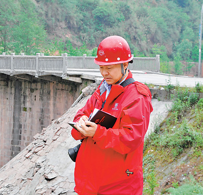 芦山地震后,崔鹏在灾区勘察。资料照片