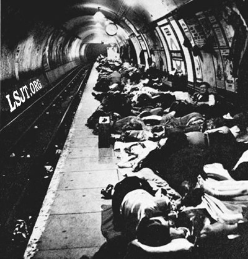 图为二战期间,用作防空洞的伦敦地铁一幕。