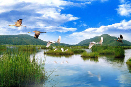 湿地与森林、海洋并称全球三大生态系统,也是价值最高的生态系统。根据《湿地公约》的定义,湿地包括沼泽、泥炭地、湿草甸、湖泊、河流、滞蓄洪区、河口三角洲、滩涂、水库、池塘、水稻田以及低潮时水深浅小于6米的海域地带等。湿地具有涵养水源、净化水质、调蓄洪水、控制土壤侵蚀、补充地下水、美化环境、调节气候、维持碳循环和保护海岸等极为重要的生态功能,是生物多样性的重要发源地之一,因此也被誉为“地球之肾”、“天然水库”和“天然物种库”。