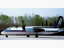 1966年4月,西安飞机工业公司正式启动逆向仿制前苏联的安-24运输机,新机命名运-7(代号:Y-7),为双发涡轮螺旋桨中短程运输机。首架运-7样机于1970年12月25日首飞上天。运-7第一架原型机首飞后,于1977年和1979年两次组织了飞机设计定型鉴定,由于部分机载成品没有定型,几个试飞科目尚未试飞等原因,国家没有批准设计定型。1980年,运-7完成换装大功率的涡桨5A-1型发动机的论证、设计、生产及鉴定试飞。1982年7月24日,运-7飞机经军工产品定型委员会批准设计定型,投入小批量生产。在进行了单发起降试验后,1982年7月30日,国家正式批准运-7飞机设计定型。1984年1月23日,中国民航局正式颁发运- 7飞机适航证。该机1986年投入客运服务。运-7民用型属于50座级支线客机。