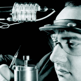 1960年,美国休斯研究室的梅曼运用固体的红宝石做实验,梅曼将氙闪光灯发出的光照射在红宝石上,突然,一束深红色的亮光从装置中射出,它的亮度是太阳表面的4倍!红宝石由于受激而发射出方向高度集中的强光束,这是一种完全新型的光,科学家渴望多年而自然界中并不存在的光,它被命名为Laser,是英文“受激辐射光放大”缩写,这就是激光。产生激光的装置被称为激光器。第一台红宝石激光器的发明为现代各种激光器的研制奠定了基础。