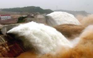 2002年7月4日,小浪底水库的三个明流洞和三个排沙洞的闸门同时开启,黄河首次进行的大规模调水调沙试验正式开始。