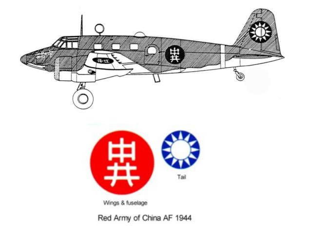 这架飞机是1944年我军在华北缴获的日军立川Ki54,直接把“中共”涂在了日本的红膏药上。在垂尾上涂青天白日徽可能是便于友机识别。