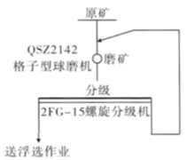 成(见图1)。生产中发现螺旋分级机分级效率较低、溢流产品粒度不稳定,直接影响到浮选作业指标的稳定和提高。因此对原一段磨矿分级系统进行了优化改造(见图2)。