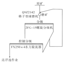 现场一段磨矿分级系统由格子型球磨机和螺旋分级机组