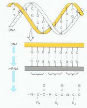 关于基因的化学本质方面,根据O.T.Avery等(1944)进行的转化实验,以及A.Hershey和M.Chase(1952)用大肠杆菌噬菌体的DNA进行的性状表达实验,已阐明DNA是遗传信息的载体。附着DNA结构研究的进展,1960年已经确立了这样的概念,即基因所具有的信息可将DNA的碱基排列进行符号化。信息在表达时,DNA的碱基排列首先被转录成RNA的碱基排列,然后再根据这种排列合成蛋白质。有的病毒的遗传信息的载体不是DNA,而是RNA。遗传信息不仅有相应于蛋白质的基因信息,也包括对信息解读所必需的信息、控制信息表达所必需的信息,以及生物为了复制与自己相同结构所必需的一切信息。1