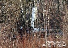 在俄罗斯斯摩棱斯克的事故现场,失事的波兰总统专机图-154的尾翼摔在沼泽地里。树木中间以上部分全部被烧毁,痕迹非常明显。据当地人说,10日上午10点到11点多,当地有雾。目击者称,飞机由东向西降落过程中,触到了树木。