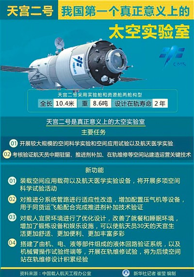 如果说天宫一号是空间实验室的“入门级”实验飞行器,主要目标是完成空间交会对接任务,那么天宫二号则完全是真正意义上的小型空间实验室,旨在解决一定规模、短期有人照料的空间应用问题,具备开展各种工作和试验的条件。