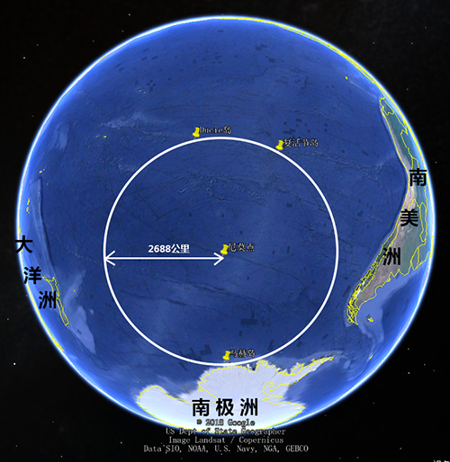 若以尼莫点为圆心,2688公里为半径在地球表面画一个圆,这个圆内的区域将没有一块陆地,而是一望无际的汪洋大海。由于这里离陆地足够远,人和动物足够少,面积足够大,自然成为了无法彻底燃烧的航天器碎片最好的“着陆点”。
