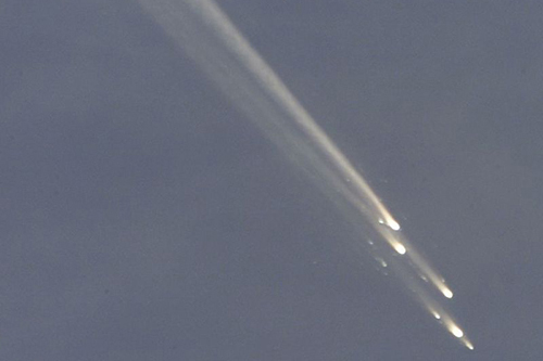 和平号空间站在空中解体焚毁