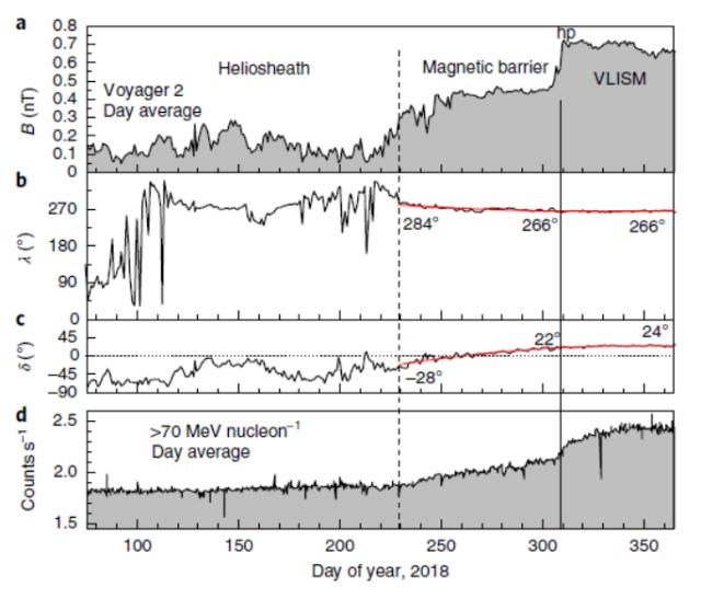 [3] Burlaga, L. F. et al. Magnetic field and particle measurements made by Voyager 2 at and near the heliopause. Nature Astronomy (2019)