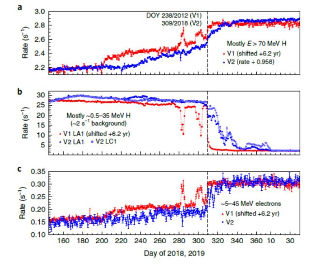 [4] Stone, E.C. et al. Cosmic ray measurements from Voyager 2 as it crossed into interstellar space. Nature Astronomy (2019)