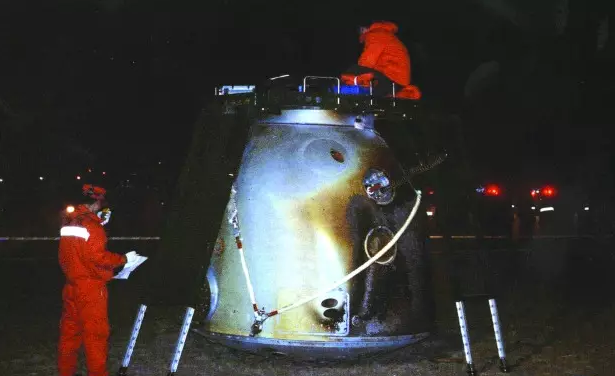 由于飞船穿越大气层时的表面温度极高,因此绝大多数材料都无法承受这样的温度。聪明的科学家和工程师为此想出了一种“丢卒保帅”的巧妙办法,他们在返回舱外部特别是温度最高的底部包覆了一层称为“烧蚀材料”的厚厚防热层。这种材料引火烧身,能够通过燃烧自己,耗散大量的热能,从而保护飞船。飞船返回舱着陆后看起来像个烧黑的大铁锅,这就是烧蚀防热形成的结果。