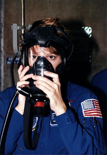 佩戴着呼吸防护面具的航天员