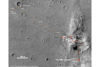 随着大量图像的涌入,“好奇号”已经走过了21.6公里。从地图上可以看到,任务科学家们已经有点疯狂,他们给每一块岩石都起了名字,给好奇号经过的每一个地方起了名字。好奇号在盖尔撞击坑的着陆点也是在早期任务收集的数据基础上确定的。盖尔撞击坑有35亿年的历史,直径150公里,后来充满了湿沉积物和尘埃,然后又遭到侵蚀。这种不同寻常的地质环境使好奇号得以在绕着撞击坑行驶的同时,研究火星历史上的不同时期。