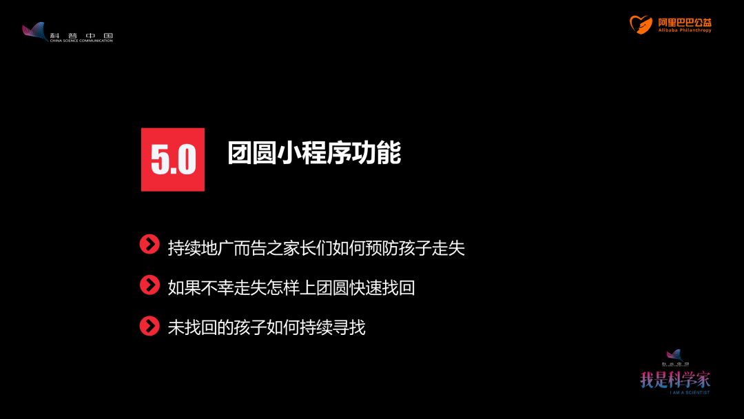 今天我不想介绍我的主要工作,而是想聊一聊我在阿里参与的“团圆”公益项目。我们做这个项目,是想帮助寻找更多的失踪儿童,能够让他们跟家人团圆。