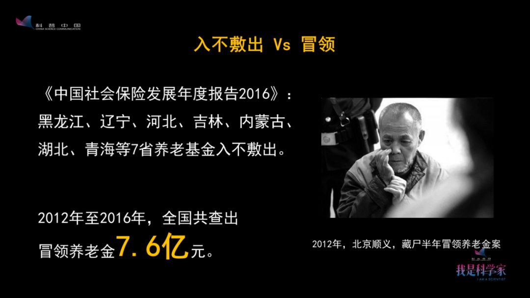 去年(2018年)上半年,安徽省比较了公安厅人口注销的数据和养老金领取的数据,发现大概有9800人涉嫌冒领养老金。这种现象实际上造成了养老保险基金的流失,严重破坏了我国在养老保险方面的公平、公正以及互助性,加剧了养老金的收支不平衡。