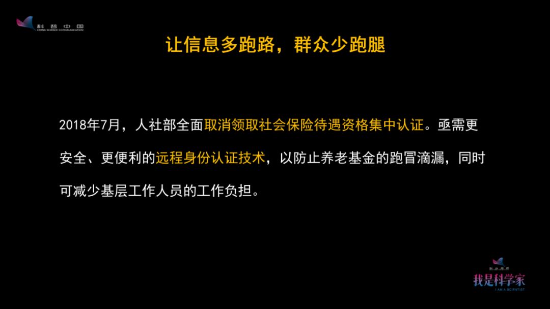 2018年7月,人社部全面取消了社会保险待遇资格集中认证的方式。这样就急需更安全、更便利的远程身份认证技术,防止养老基金跑冒滴漏,同时也减少基层工作人员的工作负担。
