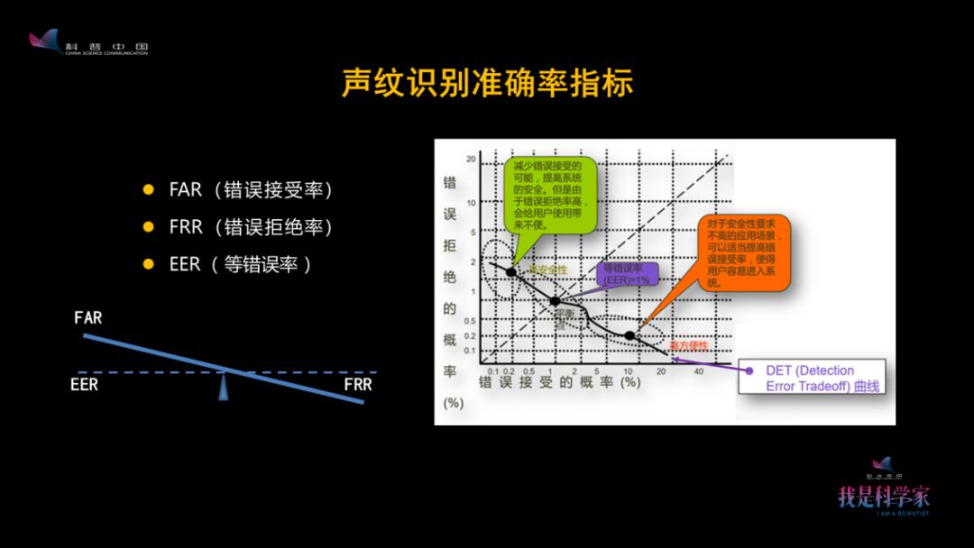 其实有两个指标,一个是错误接受率(FAR,不是本人语音但是系统认可),另一个是错误拒绝率(FRR,是本人语音但系统没有通过)。
