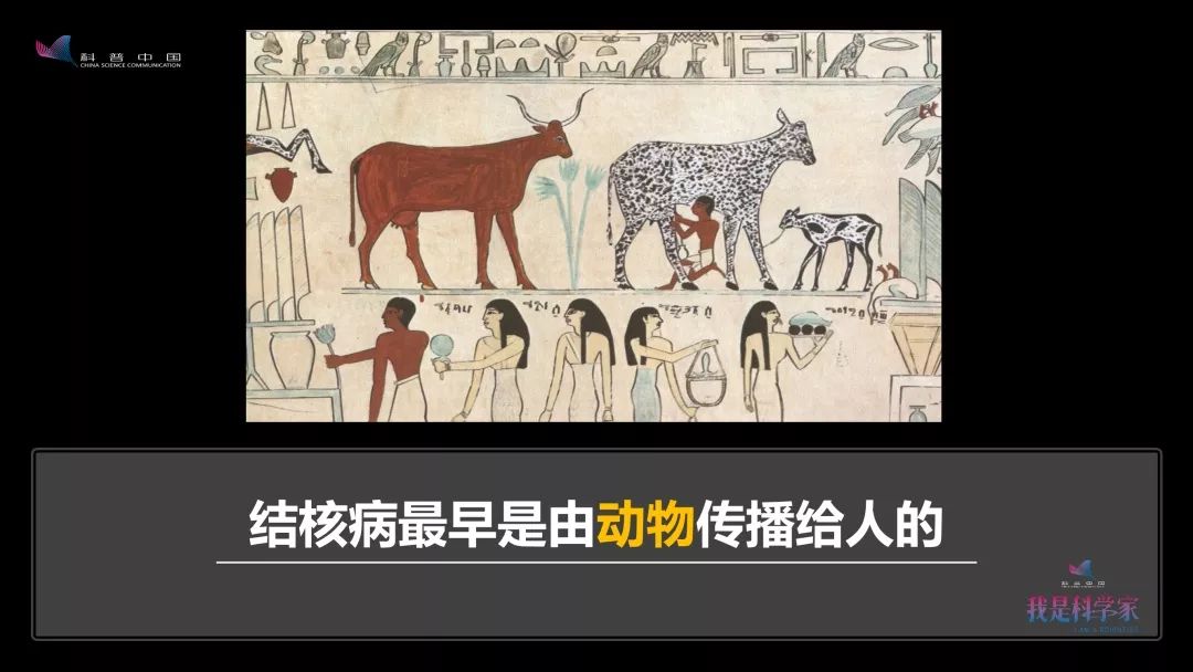通过基因测序,我们了解到,结核病最早是通过动物传染给人的。直到现在,牛结核依然可以人畜共患。