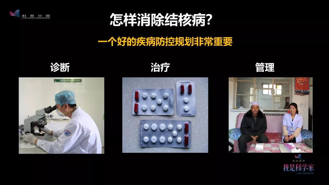 既然疫苗暂时没办法消除结核病,我们就找了一条更艰辛、更困难的路,就是以最快速度发现结核病人,并给他最好的治疗,从而避免结核菌的传播。