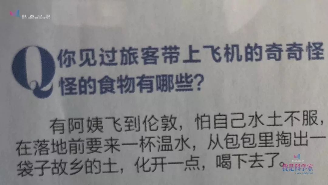 当你到一个新地方去,可能会感到水土不服。这名阿姨带着家乡的土壤,把它泡在水里喝下去,让体内的微生物能够慢慢适应当地。