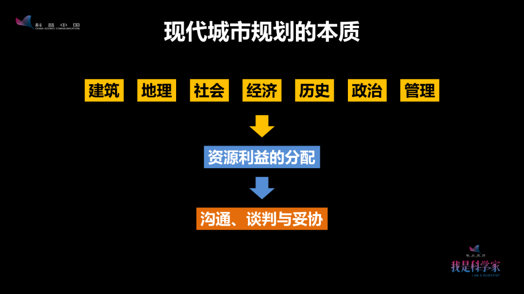 城市规划,就是规划未来城市如何健康有序发展,核心是资源利益的分配。城市里有那么多人、那么多利益群体,大家对资源利用往往有不同看法和态度。因此,城市规划不仅仅只是理性的技术工作,也需要沟通、谈判、妥协。真正好的城市规划并不一定最科学、最完美的方案,而是大家都认可、都接受的那一个。