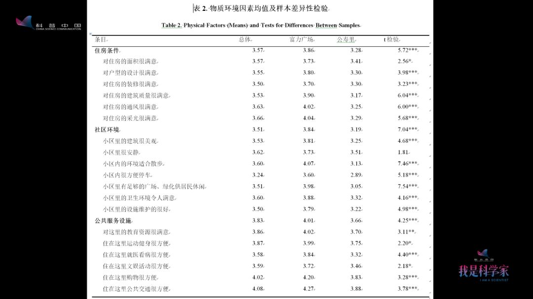 我们主要考虑的物质性因素包括住房条件、社区环境、公共服务设施,这些对于社区依恋有非常重要的影响。