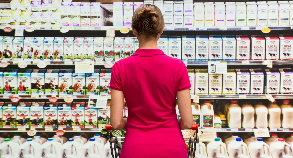 玲琅满目的牛奶货架(图片来源:Veer图库)