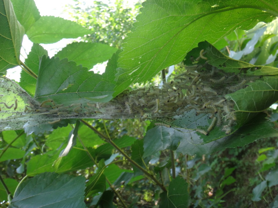美国白蛾危害后形成网幕(图片来源:张龙娃)