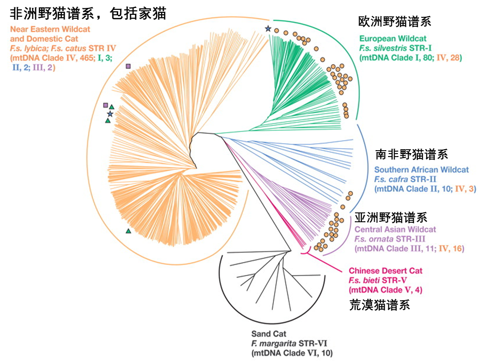 进而,科学家们通过分子序列对家猫驯化的起始时间进行了估算,但由于分子钟理论不太适用于太近分歧的类群,因此,只能大概知道猫的驯化发生在过去10000年这个时间段内。