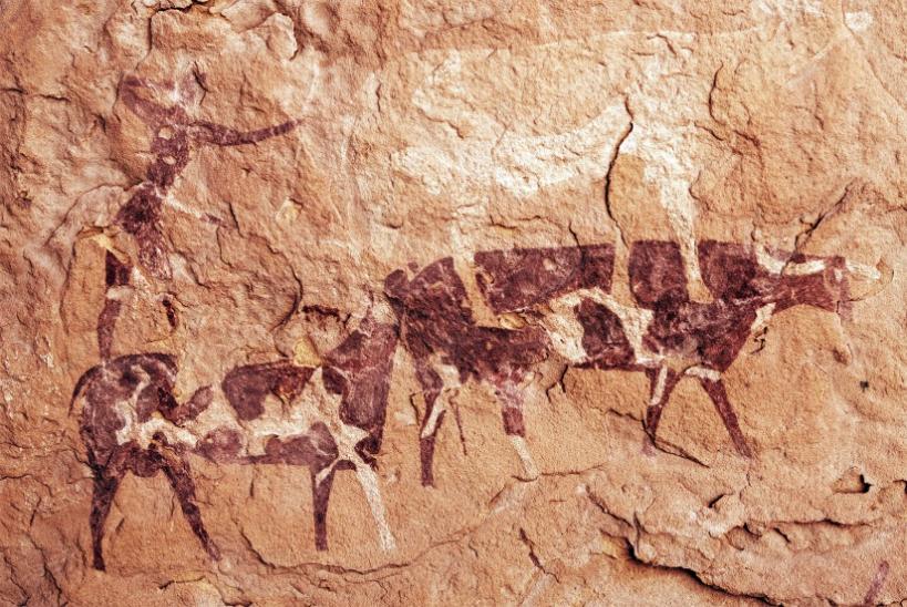 人类驯化了牛的岩画(图片来源:britannica.com)