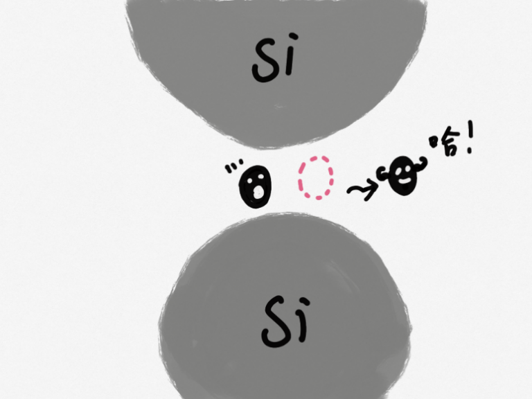 在硅晶体中,每个硅原子的上下左右都相邻一个硅原子,正好硅最外层有四个电子,它就会和相邻的硅原子共用这些电子,这样每个硅原子最外层就凑齐了8个电子。完美!