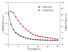 土壤有机质含量和生产能力随开垦时间的变化(图片来源:参考文献1)