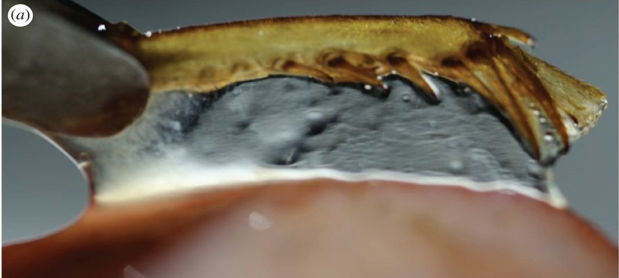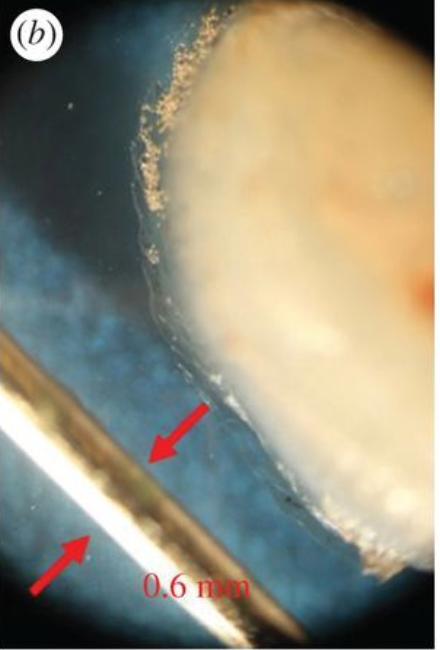 青蛙的舌头粘不是因为舌头本身,而是因为舌头上粘液腺分泌的、像水凝胶一样粘附着的唾液。所以诺埃尔和同事从各种青蛙和蟾蜍的嘴中弄下来粘糊糊的唾液,作为实验样本进行测试。这些唾液的厚度是人类唾液的7倍,最厚达到了0.7mm。