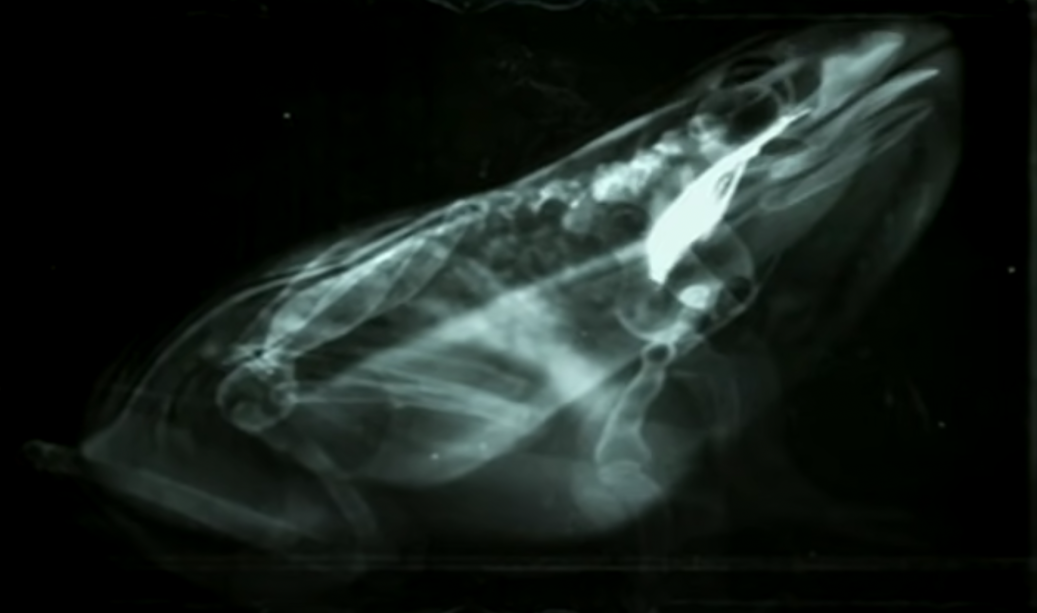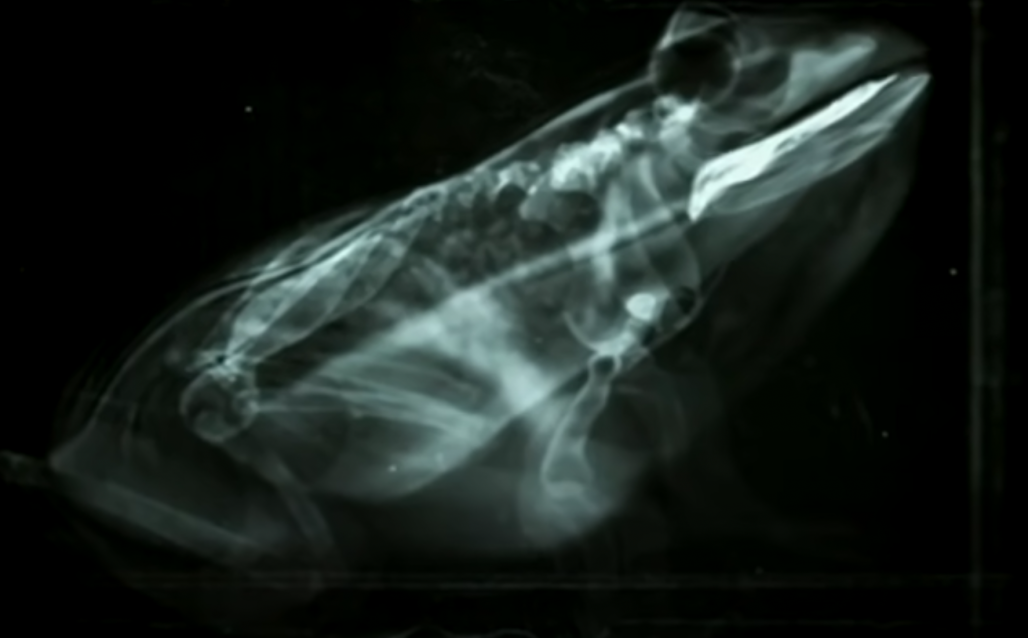 答案是——用眼珠子来帮助吞咽。科学家用X光机观察青蛙的吞咽场景,发现当蟋蟀进入了青蛙口中,青蛙必须把蟋蟀松开。