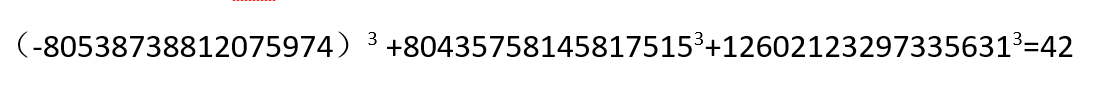 直到2019年,数学家们终于发现:42真的可以写成三个整数的三次方之和。