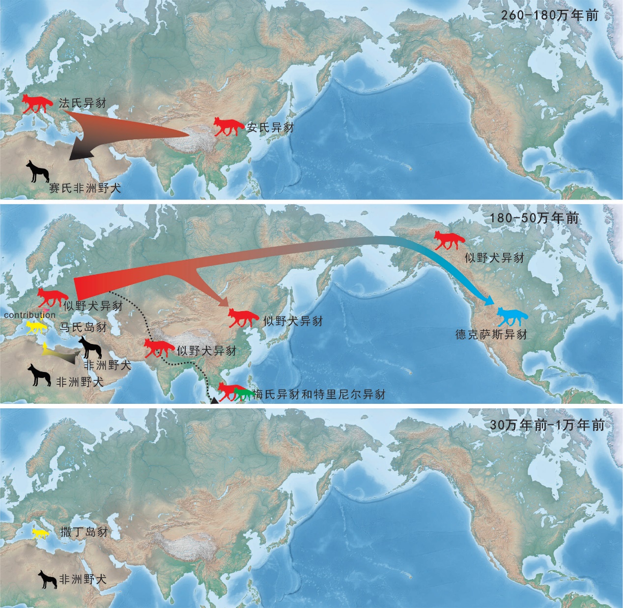 异豺大概在50万年前灭绝,而最早的狼则在40万年前左右出现在欧亚大陆北部,并很快成为生态系统中的重要组成部分,繁荣至今。