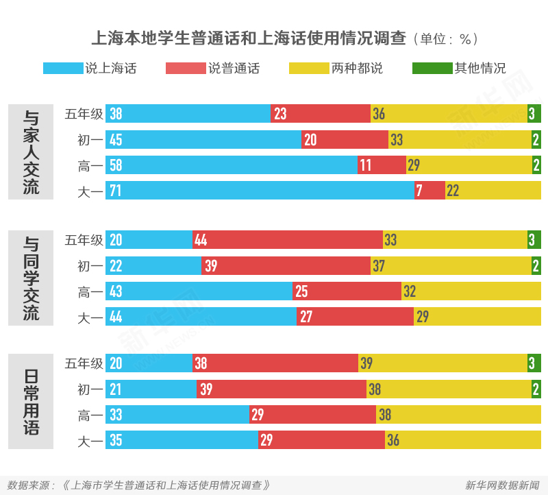资料来源:教育部,中国文化研究院,人民网,央视网, 中国方言网,今日头条, 《上海市学生普通话和上海话使用情况调查》 , 维基百科