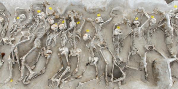 三 在雅典法勒隆三角洲发掘的古雅典墓地,发现80个被绑在一起重击头部而死去的年轻人,随葬的陶罐帮助考古学家把埋葬时间确定为共公元前七世纪的中后期。这个时期正是雅典政治气候极端不稳定的时期,变化的方向是由国王与贵族共治的政治形态变为僭主政治。骨学分析指出,这些死者都在20—30岁之间,也有几个更年轻的。研究者认为,这种死亡方式显然是因为政治斗争,是当时激烈政治变化过程的一个反映。